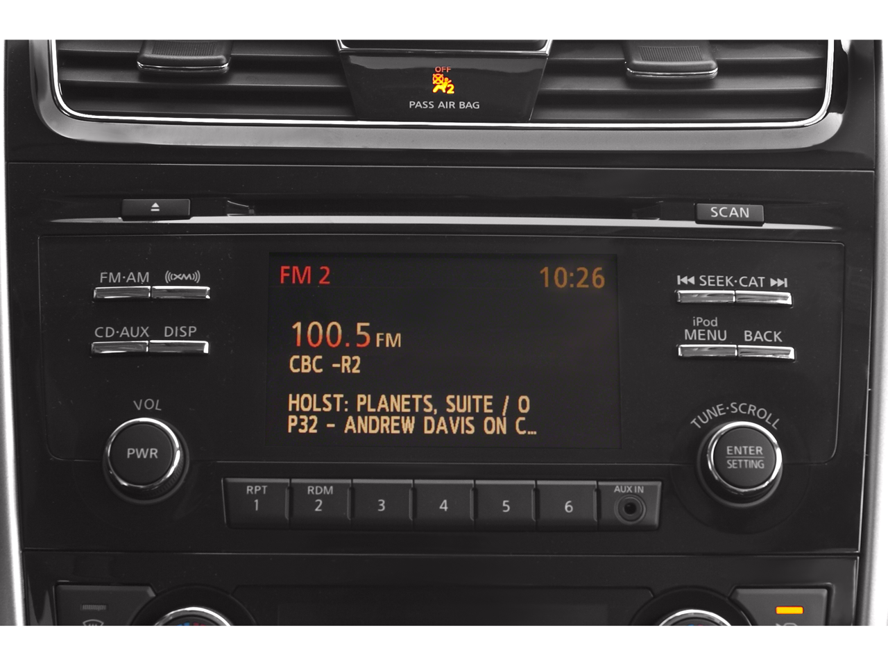 - Radio: AM/FM/CD/MP3 Audio System w/SiriusXM -inc: Radio Data System (RDS), aux-in, 6 speakers, streaming audio via Bluetooth wireless technology, steering wheel-mounted audio controls, 5" color audio display, rearview monitor, USB port, hands-free text messaging assistant, NissanConnect Smartphone Apps, diversity antenna and Speed Sensitive Volume (SSV)