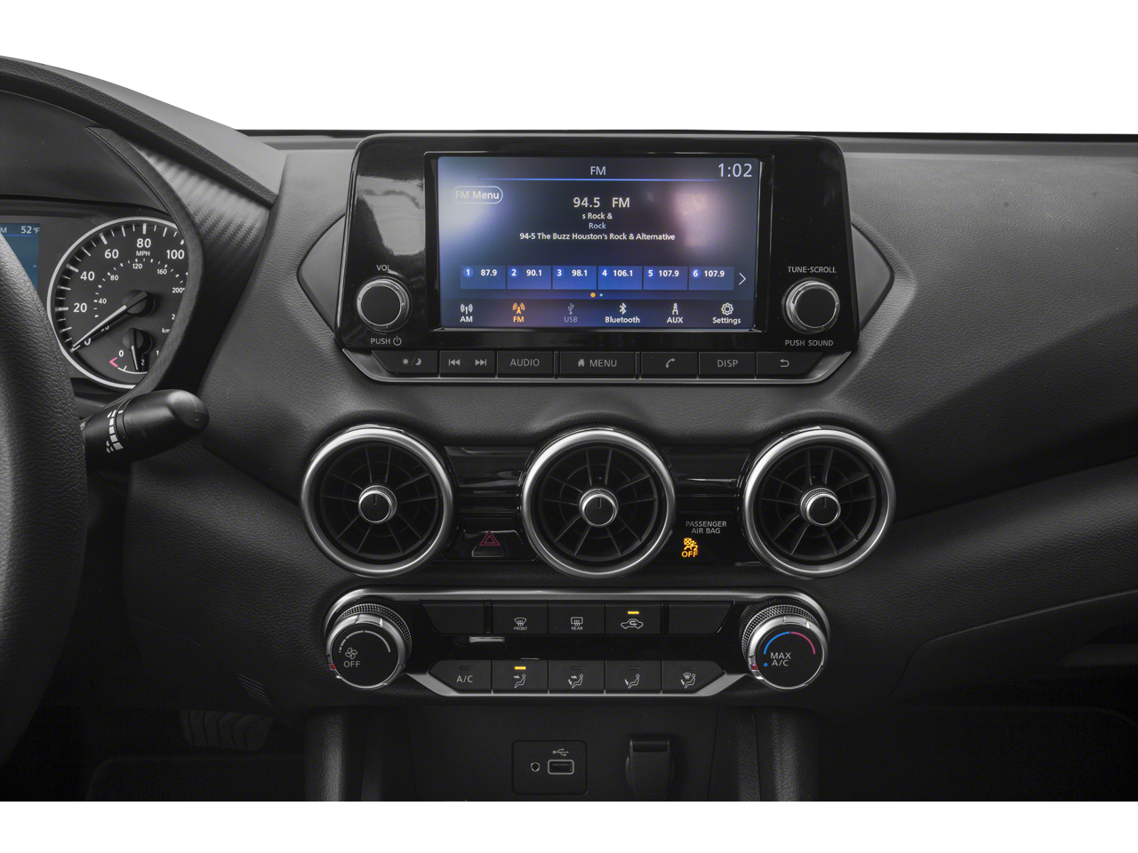 - Radio: AM/FM w/RDS/MP3/Aux-In -inc: 8" color display w/multi-touch control, streaming audio via Bluetooth, Bluetooth hands-free phone system, hands-free text messaging assistant, Siri eyes-free, Google Assistant voice recognition, NissanConnect featuring Apple CarPlay and Android Auto, 1 additional front USB (type C) and 1 charge-only USB (type A) center console and SiriusXM radio w/advanced audio features